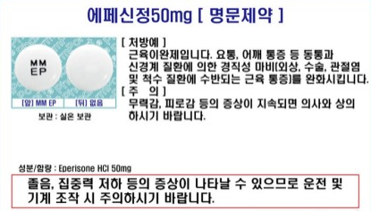 에페신정은 흰색 원형 당의 정제로 성분은 에페리손염산염 50mg 입니다. 에페신정 보관방법은 밀폐용기에 실온에서 보관해야 합니다.