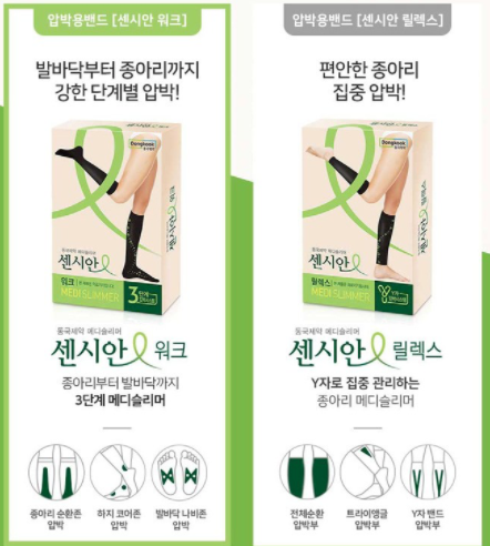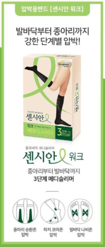 장시간 서있거나 앉아서 근무를 하시는 분들이라면 다리에 혈액순환이 되지 않아 붓거나 다리가 저리는 일이 많습니다. 센시안압박밴드는 그런 분들에게 탁월한 효과가 있다고 알려져있습니다. 다리의 압박을 부위별 단계 압박을 주기 때문에 혈액순환에 도움을 줍니다.