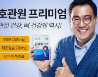 호관원 프리미엄은 관절건강 증진에 중점을 둔 제품입니다. 주성분에는 MSM, 해조칼슘이 있으며, 그외 34가지 추가 원료를 첨가한 건강 보조 식품입니다. 주성분인 MSM은 관절 및 연골 건강에 도움을 주고, 해조칼슘은 뼈와 치아 형성에 필요하며 신경과 근육 기능 유지에 필요한 성분입니다. 나이가 많은 어르신들, 갱년기에 접어든 분들에게 효과가 좋다고 합니다.